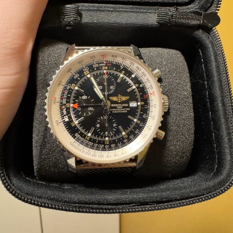 Breitling 1809 har i tillegg en 24-timers skive som gir den en ekstra dimensjon, for oss med interesse kanskje litt ut over det normale. Klokken kommer med original lenke, som er sjeldent å se i dag på disse modellene. God dokumentert service historikk på denne.Kan vurdere innbytte i high end hi fi. Fortell meg hva du har, modell/tilstand og pris.