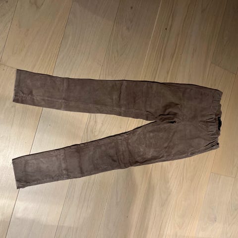 Selger en kjempefin og helt ubrukt skinnbukse fra kvalitetsmerket Arma. Buksen er laget i mykt semsket skinn med god stretch og flatterende passform.