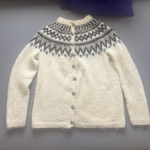 Carla F. ulljakke/cardigan med frynser. Kan kles på forskjellige måter, bruk kreativiteten din😊