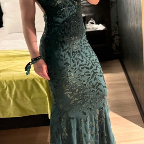 Julebord ball evening gown aftenkjole galla cocktail party glitter sequin rød løper