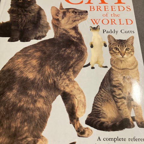 Lite lest, engelsk bok om katteraser. Kjøpt på New Zealand eller Australia 2007 eller 2009.