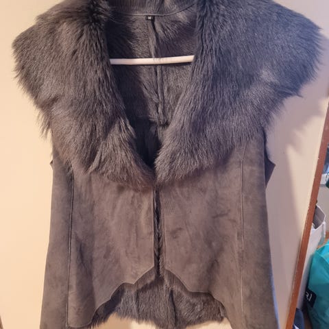 Ny semsket skinnvest med alpakka-pels.