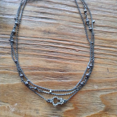 Langt tvunnet blankt kjede med skrulås, 95cm langt - ikke ekte.