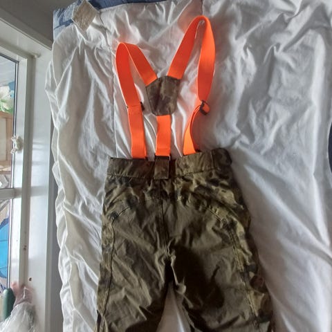 Helly Hansen barn bukse i størrelse 146, unisex, i oransje farge. Laget i slitesterkt materiale med glidelåslommer. Buksen har synlige logoer på benet. Se bilder for detaljer.