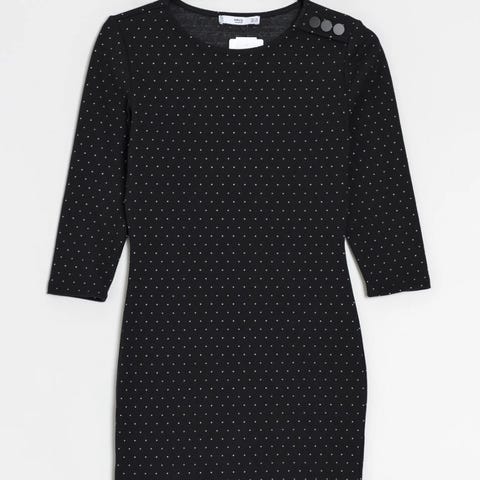 Svart kjole fra Mango med transparente blonder øverst og a-formet skjørt.