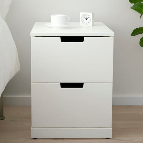 God lagringsplass: Nattbordet er designet med 2 skuffer og 1 åpent rom for å holde ting organisert og innen rekkevidde.
