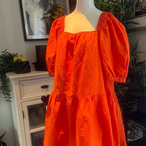 Knall orange figurnær kjole i str 40. Superfin når man har sommerbrun hud
