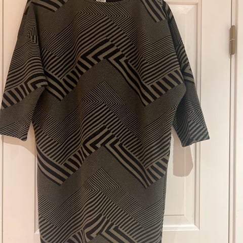 Grønn kjole for dame i størrelse M. Langermet design med v-hals og enkel passform. Laget av mykt og elastisk materiale som gir komfort ved bruk.