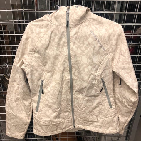 En helt ny regn jakke med hette, og kan strammes på midjen etter ønske. Den lukkes med glidelås og knapper