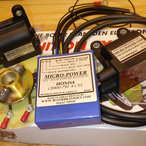 Komplett digitalstyrt elektronisk tenning fra Boyer Bransden UK. Erstatter tenningsplate , stifter og kondensator, samt coiler og pluggledninger. Komplett ny tenning leveres med stator/rotor samt blå styrings boks og par nye coiler med pluggledninger, ferdig plugget i coil. Erstatter mekanisk regulering med elektronisk styrt fortennings-kurve . Alle enheter er del av et tilpasset system. Boyer blå box system styrer høy ampere puls for lading av lav ohm coil, og reduserer strøm til tenning betydelig i forhold til stifte type tenning, som krever mye strøm. Montering er greit å gjøre selv, med god instruks. Medfølger materiale for montering ny coil. Pris er inkl postpakke levert din adresse.