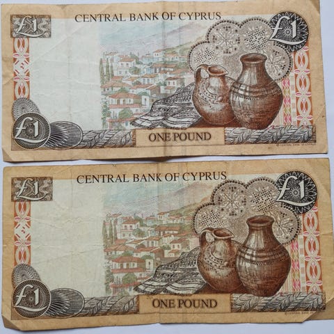 Central Bank of Cyprus 10 Lira seddel utstedt i 1995. Sedlen har detaljerte illustrasjoner og tekst på både gresk og engelsk. Den viser historiske og kulturelle elementer fra Kypros.