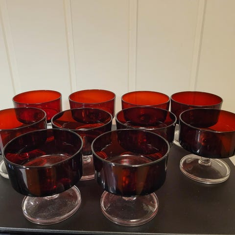38 stk røde desserskåler 8cm høy og 8.5cm i dia.100kr pr.stk