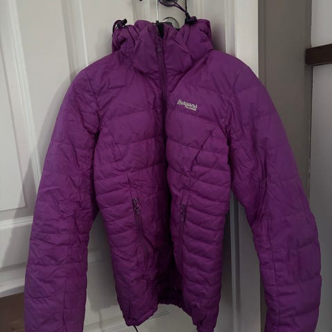 Selger en pent brukt bergans Rjukan lady dun jakke.den er veldig varm.fargen er pink/lilla.