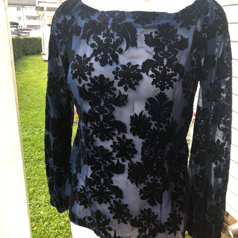 Rålekker bluse dame gjennomsiktig med fløyelsblomster