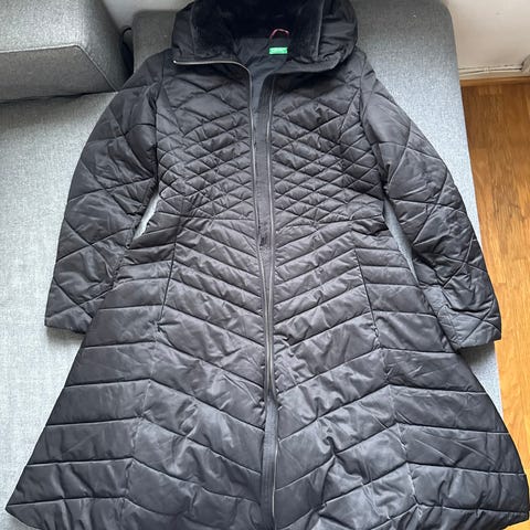 Lett og fin ! Pent brukt boblekåpe fra Benetton , Made in Italy ( og kjøpt i Italia ) str S / 36 . ( be gjerne om nøyaktig mål ! )