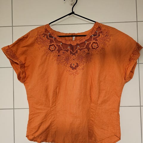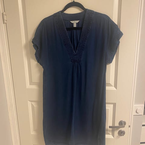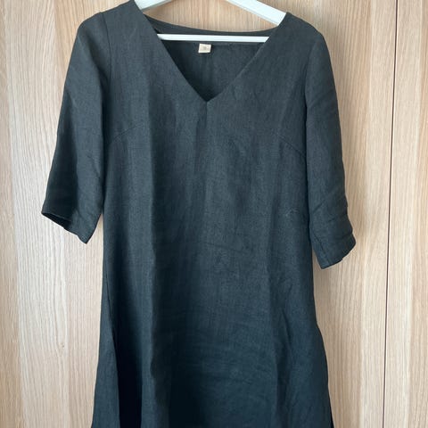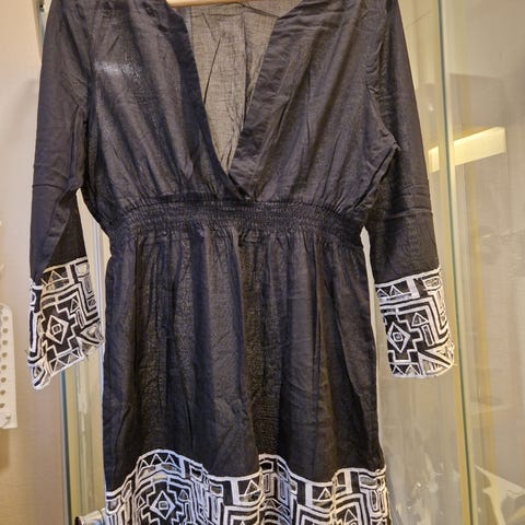 Fin tunika i lin fra H&M selges (str 36). Deilig på sommeren. Har splitt i sidene, samt nederst på ermene. Fine broderier/detaljer i svart farge.