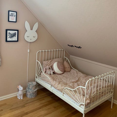 Elefant til å henge på veggen og gir et fint uttrykk på barnerommet. Laget i stoff og "plysj" med oppheng bak. Pent brukt. Dyrefritt hjem.