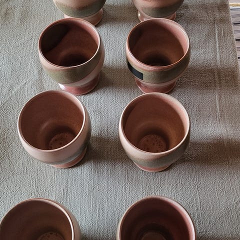 4 meget spesielle og flotte ELDRE farris glass. Det er et flott mønster i glasset. Glassene er makne, men litt forskjell på størrelse og vekt. Høyden er 9,5 cm og 9,7cm, øverst er de 5,7 cm, 6 cm og 6,2 cm. De veier 64 gram, 81 gram, 84 gram og 90 gram. De fremstår som meget fine. Har ingen skade, eller slitasje. Se bilder av hvert glass med størrelsene. Glassene selges kr. 40,-pr. stk. De kan sendes, eller hentes her i Sandefjord, eller avtale henting i Tønsberg på Tolvsrød . Kan også sende via finn.no «helthjem», koster kr. 82,-- inntil 5 kg, flrikret og med sporing.