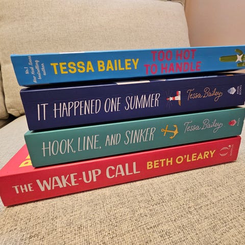 Fell good-bøker. Den ene er helt ny, den andre er mer sliten og har hatt en vannskade.