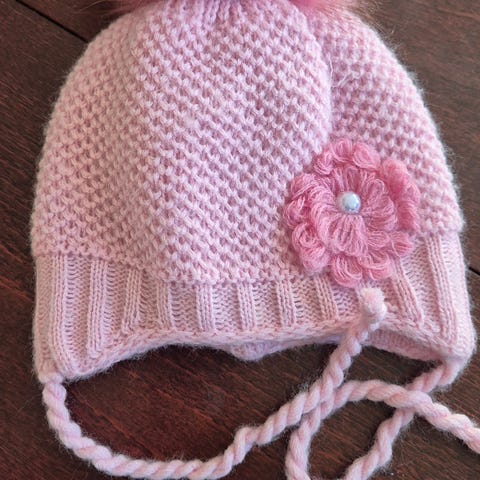 strikket lue og sokker 0-3 mnd i rosa