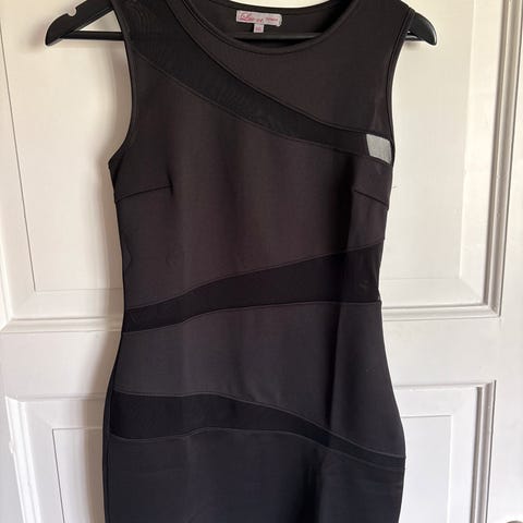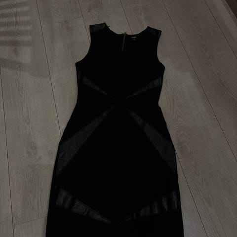 Sort kjole med gjennomsiktige detaljer. Størrelse xs