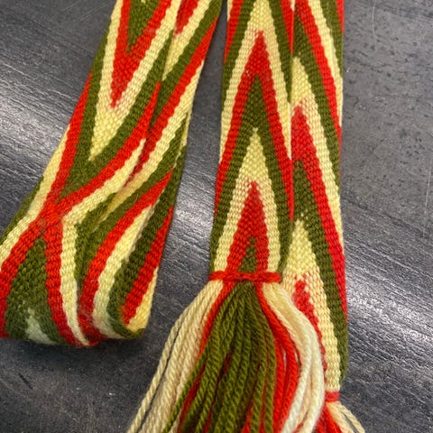 Nyvevde hosebånd som passer til Romerike herrebunad. Vevd i 3 tråders Raumagarn. Lengde på veving er 118 cm pluss frynser Har også bunadstrømper til 1500kr i str 40-42 og 42-44(45) Kan sendes. Da kommer porto på 38kr i tillegg. For begge deler er porto 73kr