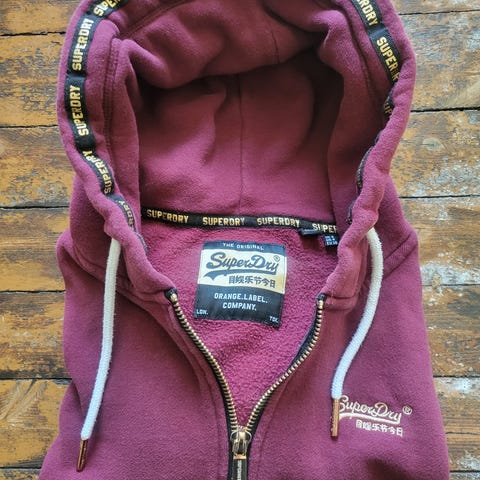 Superdry hettegenser med en liten bruksmerker på armen. Se bilde. Står str M, men er mer en smal S