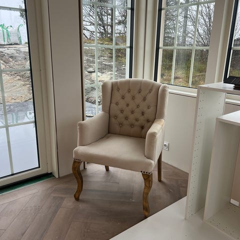 Stolene ser helt nye ut og er uten bruksmerker. De ble kjøpt for kr 7000,- pr.stol og selges nå for 3000 pr.stk.
