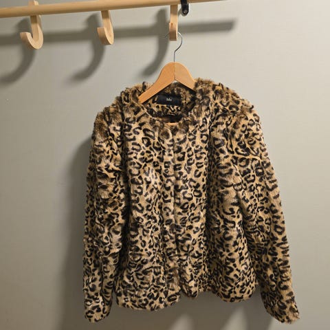 Fotsid leopard mønstret fuskepelskåpe med Minni Mus