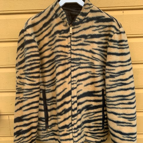 Fantastisk morsom, fotsid fuskepels hvor det er ansikter av Mikke /Minni mus gjemt innimellom. Deilig og varm med hette og lommer foran. Kjøpt i København på begynnelsen av 90 tallet, pelsen er produsert i Frankrike.