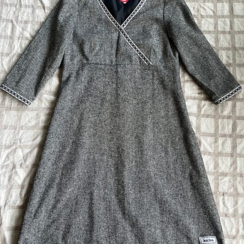 Ny ubrukt kjole fra KO:KO. Størrelsen er Euro 40. Knyting i livet og glidelås bak. Lengde fra skulder og med ca 100 cm. Stoff 95% bomull og 5% elastane.