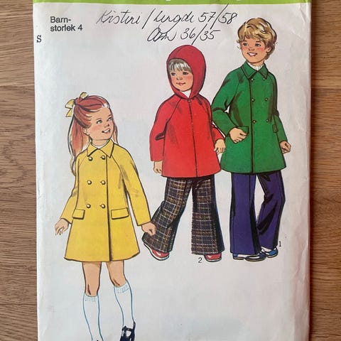 Mønster til hel dress til barn. Jeg har tre størrelser: 140, 152 og 158. Prisen er for et mønster. Velg størrelse! Dressen lukkes med glidelås som går helt opp til toppen av hetten. Veldig stas å kunne lukke seg helt inn. Jeg har sydd til mine tre gutte-barnebarn som elsket denne dressen.