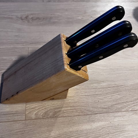 6 kniver med farget skaft