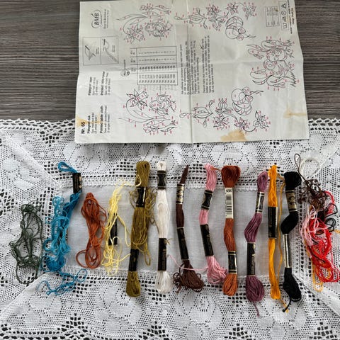 Duken blir brodert på hvit fin aida vev. Alt er med i pakken for å brodere ferdig duken. Ved sending blir det kr57,- i porto.