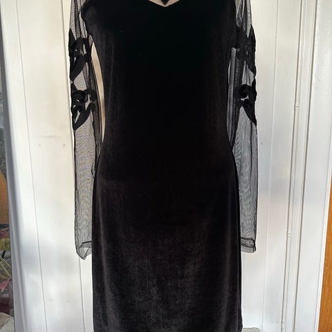 VOE kjole i kimono inspirert design. Meget flatterende og omfavner kvinnekroppen på de rette stedene. Fløyelsbånd i livet.