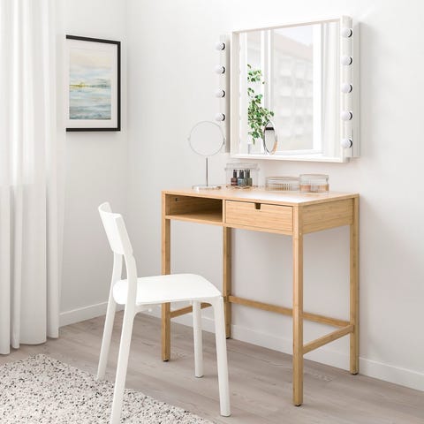 Med et tidløst og raffinert utseende, er sminkebordet med speil og LED-lys et flott tillegg til soverommet samtidig som du holder kosmetikken din for hånden!