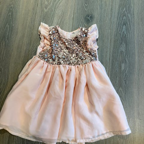 Nydelig kjole i ferskenrosa. Kjole med tyllskjørt. Kun prøvd på, fremstår som ny