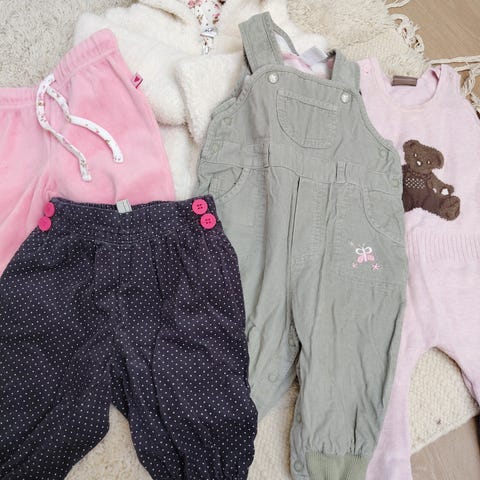 39 klesplagg til jente, str. 74, selges billig. Rent og helt