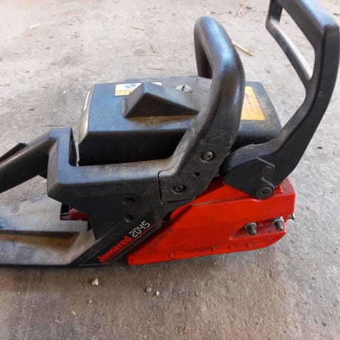 mangler primepumpe til bensin (mus) og slakk snor, sprukket hull i toppdeksel.