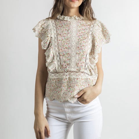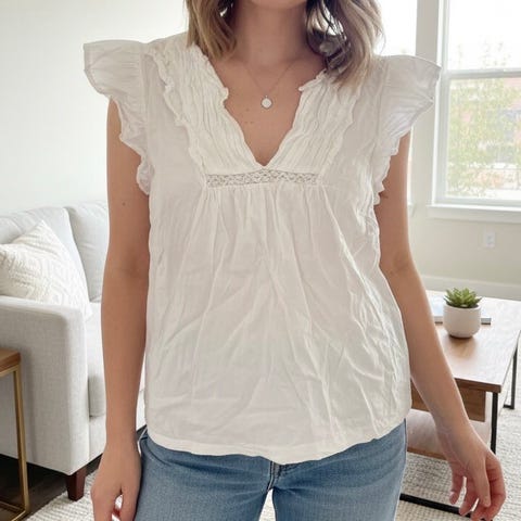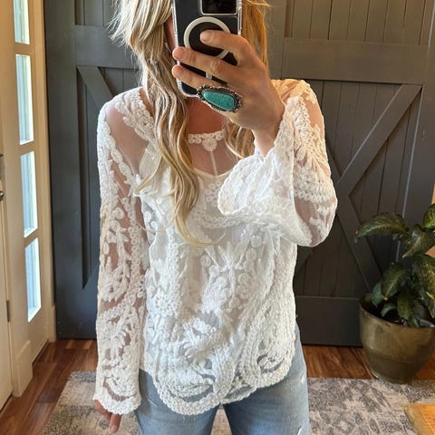 Nydelig ny hvit blondetopp med undertrøye Str M Selges kr 150,-(4)