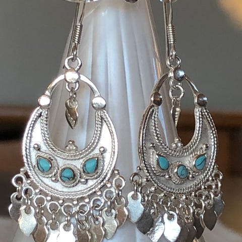 Ørepynt i sølv 925 med blåturkis stener.