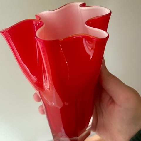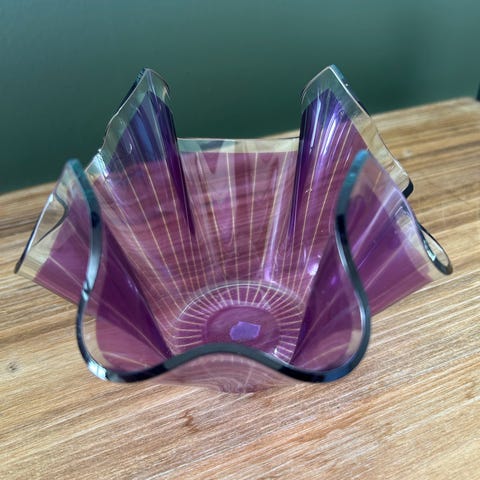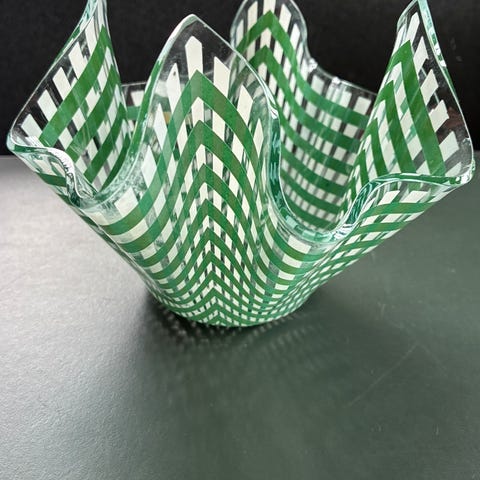 Chance handkerchief vase/skål med originalt klistremerke, produsert på 1960 tallet, har selv brukt denne som telysholder (store telys) i julen, gir ett koselig lys i stuen❤️ 🔥