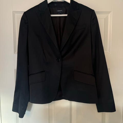 Svart Mango blazer i str. L. Kun brukt en gang. Blazeren har to knapper og tre lommer.