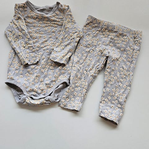 Søtt sett fra That’s mine med kremhvit body og bukse med små røde bær. Størrelse 68