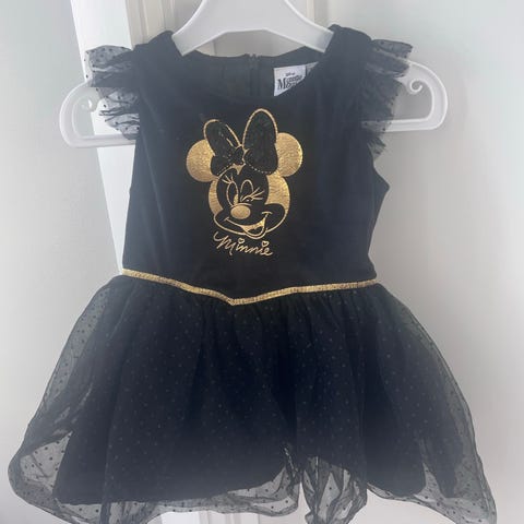 Nydelig kjole i svart med minnie trykk som ble kjøpt men aldri brukt