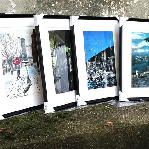 Jeg malet 2022 Bergen rund meg hver uke, komt sammen 60stk ukerelatert malerier.