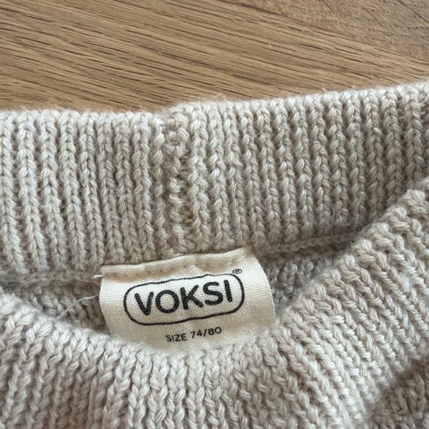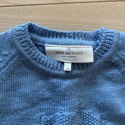 Nydelig genser med mønster og veldig fin lyseblå farge. Str 80/ 12 måneder.