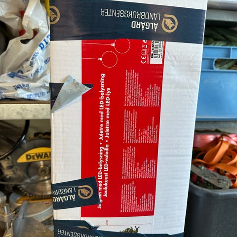 Kunstig juletre,ca 2 m ,hengslede greiner,lys og fot