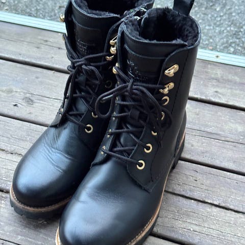 Helt nye, brukt en gang i ca 1 time. Selges pga feil str. Gode sko som er varmt foret. Kan sendes med sporing på kjøpers kostnad. Koster 2600 nye.