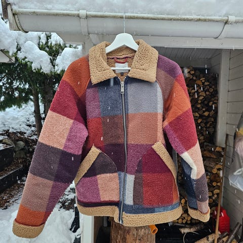 Jakke med teddyfor, glidelås og stolpe med trykk-knapper